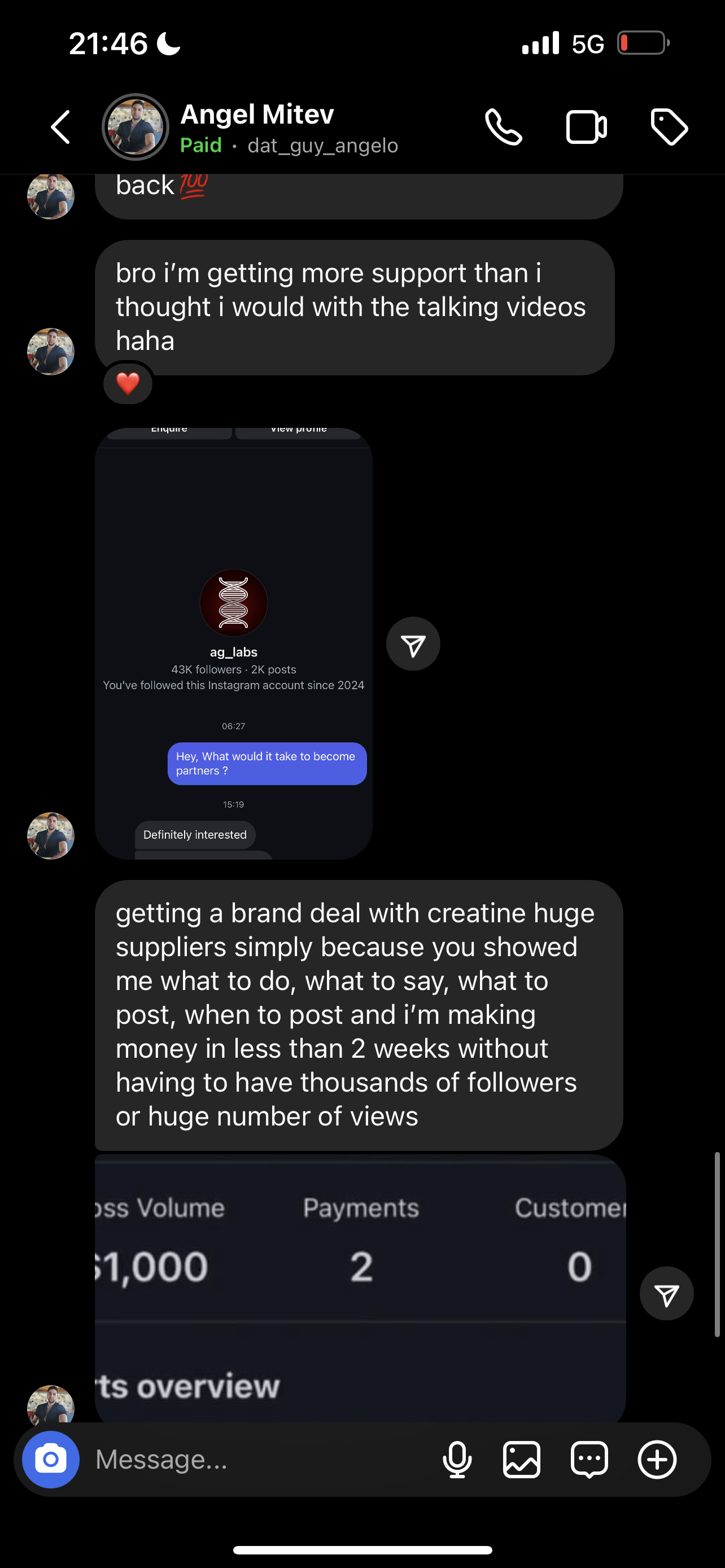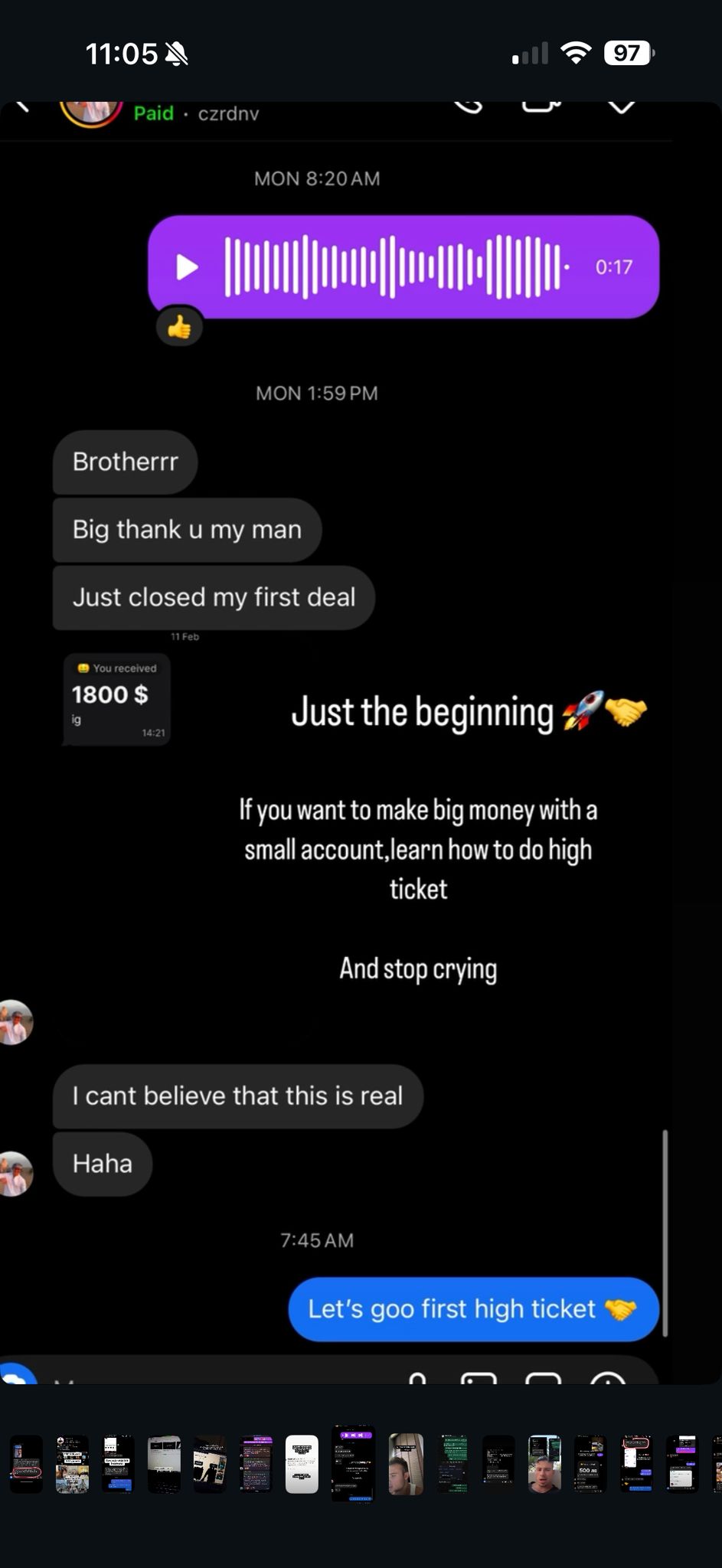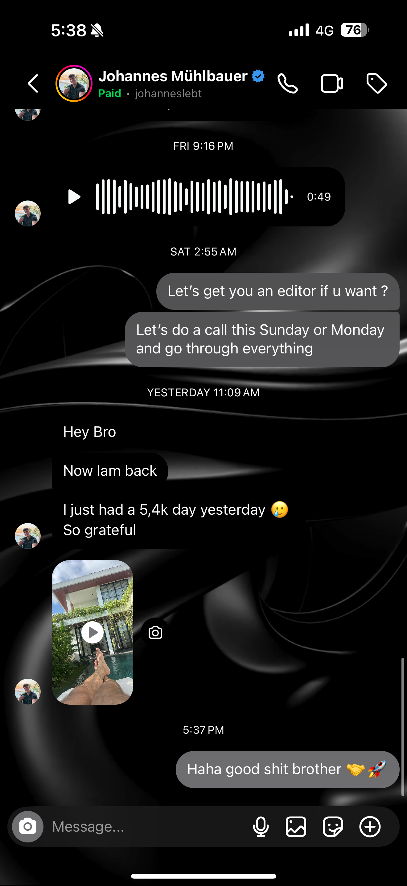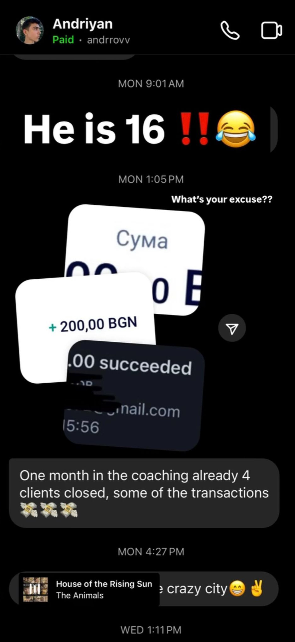 Example: Johannes had an Airbnb business and posted travel content. He had no idea what to sell. After one conversation, we built his offer around teaching others the Airbnb business model. He made $20,000 his first month.